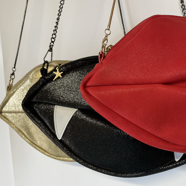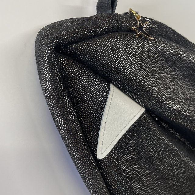 Sac Bisous en cuir Nubuck couleur Noir pailleté.