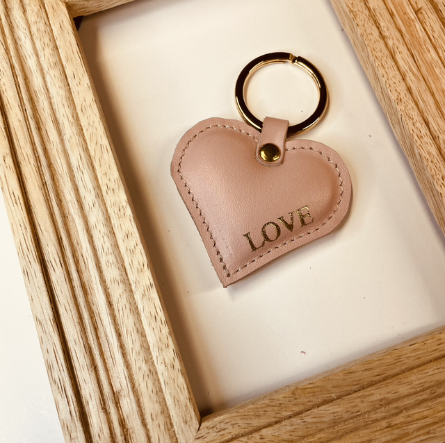 Cœur rose poudré LOVE cuir lisse